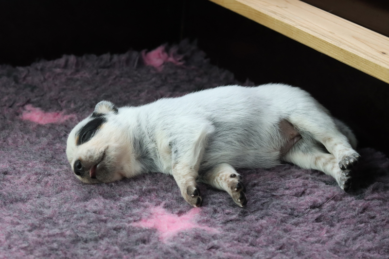 Pünktlich zum Beginn der 3. Lebenswoche haben wir die Wurfkiste abgebaut. Die Zwerge haben deutlich singnalisiert, dass sie mehr Freiheit brauchen. Testweise durften sie schon am Vortag einen Ausflug ins Welpenzimmer unternehmen. Da war die Aufregung noch groß, aber alle waren mutig und neugierig. Die Welpen agieren jetzt sehr intensiv miteinander. Mit dem größeren Auslauf beginnt auch das Sauberkeitstraining, da sie jetzt einen direkten Zugang zum kleinen Welpenauslauf haben. Noch ist die Türschwelle eine Herausforderung, aber das wird sich schnell ändern. Außerdem gab es die erste Wurmkur. Die war sooooo ekelig! Danach musste erstmal ein ausgibiges Nickerchen gemacht werden.