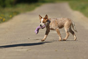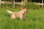 Charakter: Motzi - der Name war Programm, wenn die Kleine die ersten Wochen nicht sofort die richtige Zitze gefunden hat. Motzi hat sich zu einer selbstbewußten Hündin mit viel Power entwickelt, die für ihr Leben gern mit ihrem Frauchen im Hundesportbereich Unterordnung arbeitet. Sie zeigt dort einen ausgeprägten will to please, wobei ihr auch gern mal Cattle Dog typisch der Schalk im Nacken sitzt. Zuhause ist sie ruhig und gelassen, liebt alle Besucher, ist aber trotzdem immer wachsam.