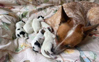 Meine Zuchtwartin M. Ahrend hat uns heute besucht, um die Wurferstabnahme durchzuführen. Gerade noch innerhalb der vorgeschriebenen ersten 10 Tage. Sie ist nämlich gestern erst aus ihrem Urlaub zurückgekehrt und dann gleich zu mir geeilt. Aber zu so niedlichen kleinen Cattle Dog eilt man ja gern. Sie war auch restlos begeistert von den kleinen Speckmaden und der lieben Mango.